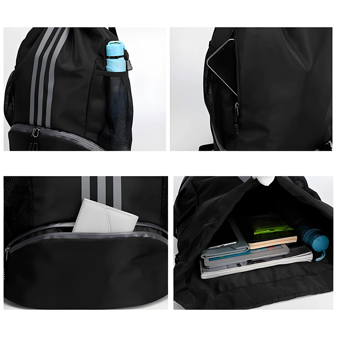 Com uma grande capacidade, esta mochila pode acomodar a maioria dos seus equipamentos de fitness, tais como uma bola de basquete, roupas de ginástica, equipamentos de natação, toalhas esportivas, livros didáticos, sapatos, e muito mais.