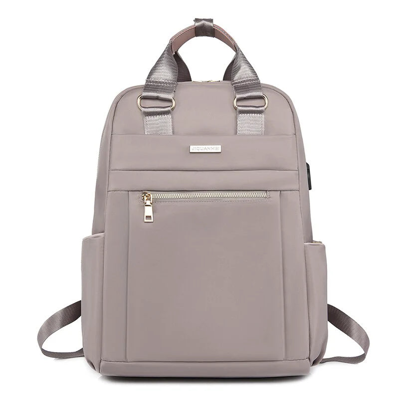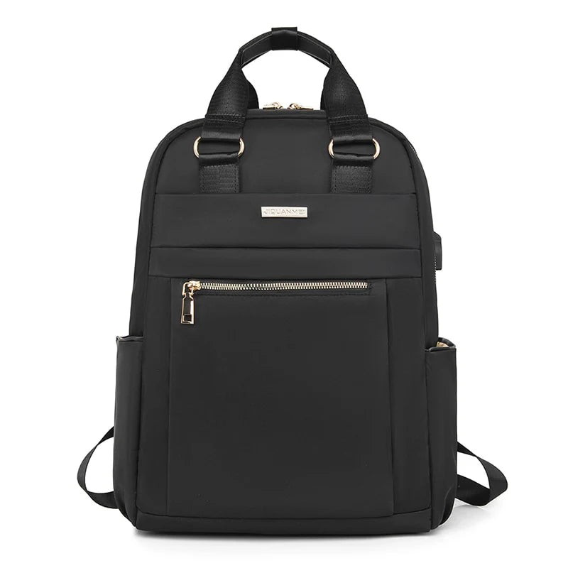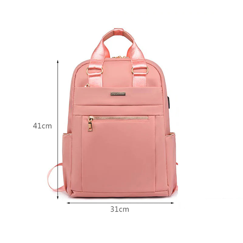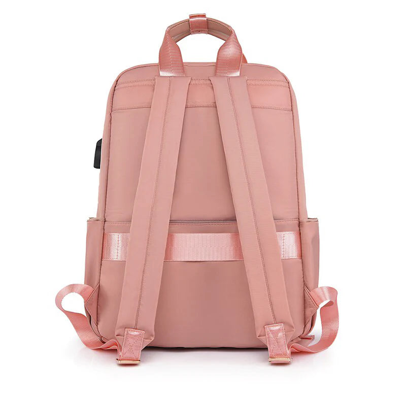 Ela tem compartimentos organizados e espaços para seus pertences, incluindo um compartimento para laptop e um bolso frontal para itens de fácil acesso.